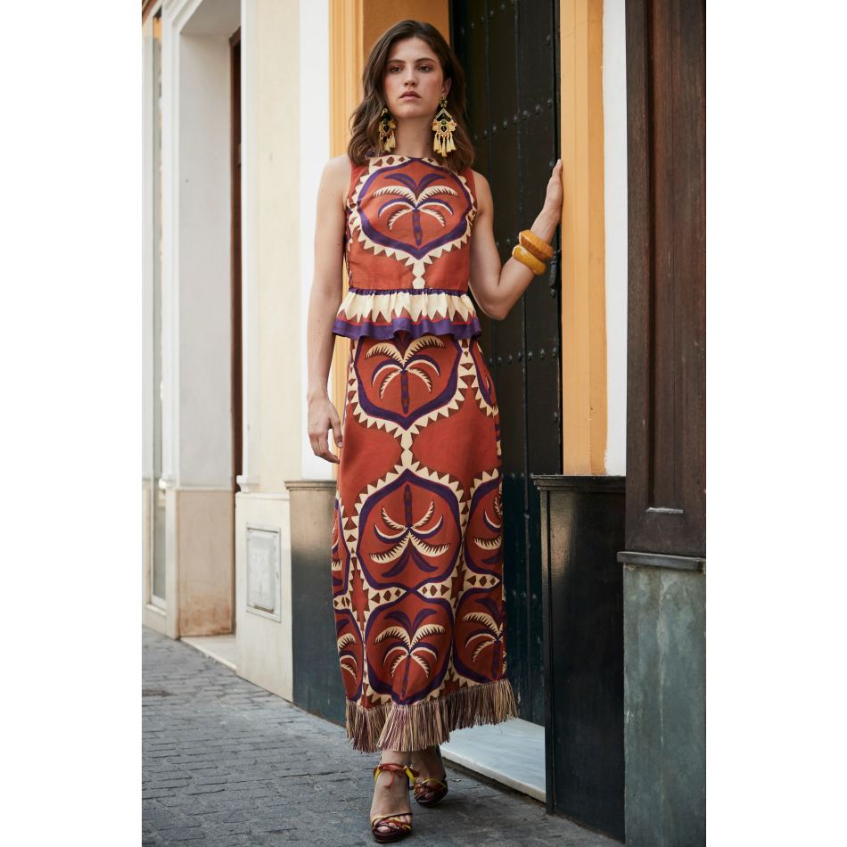 Camisa conjunto estampado palmeras elegante para invitada – Panamb cantidad